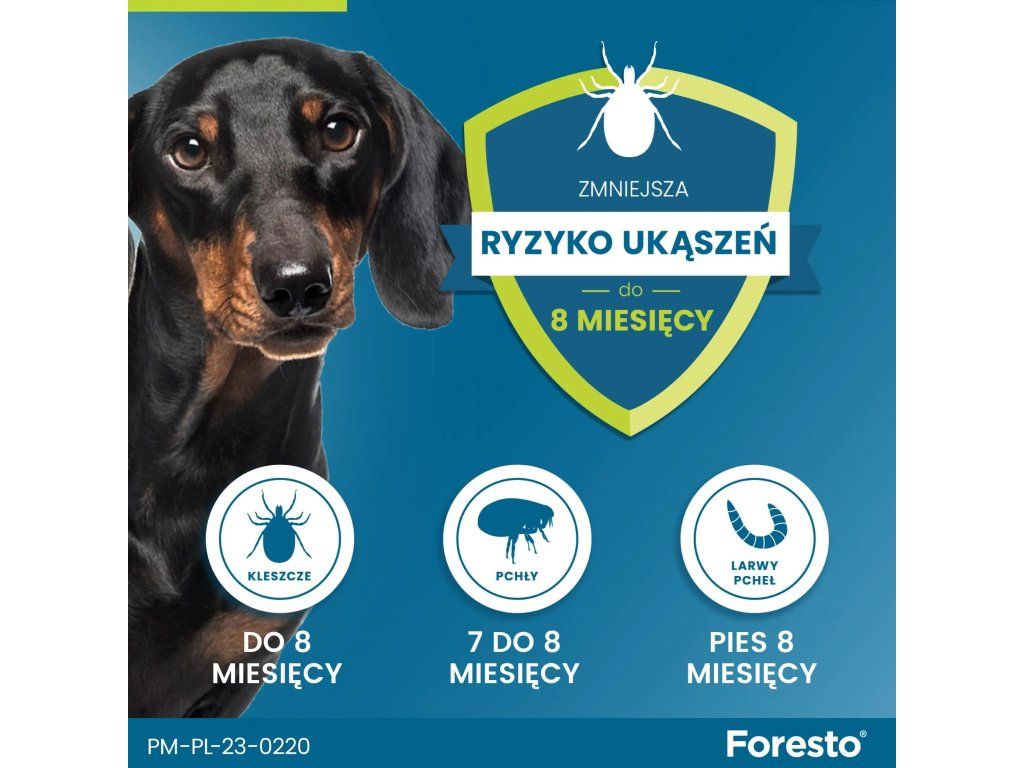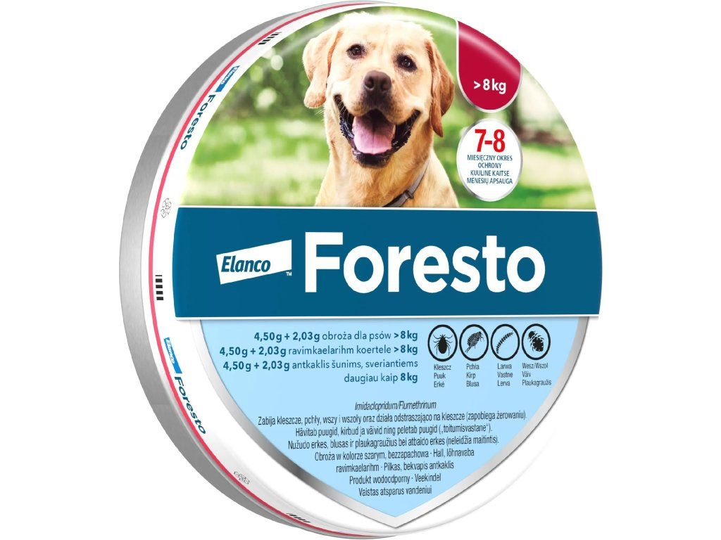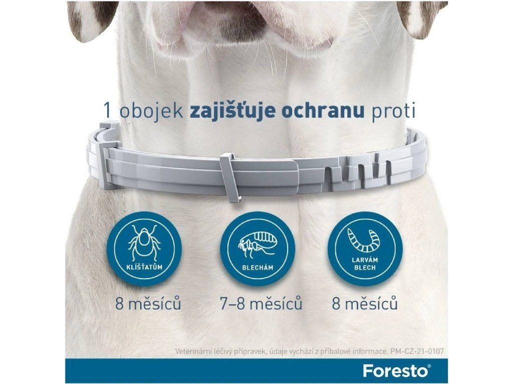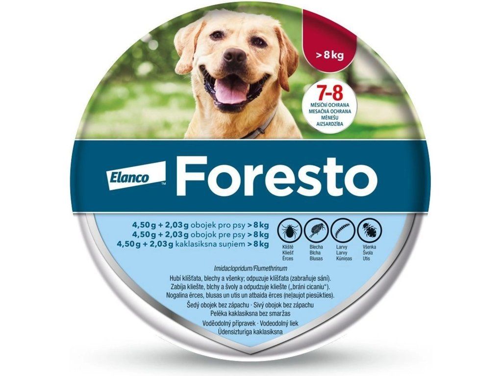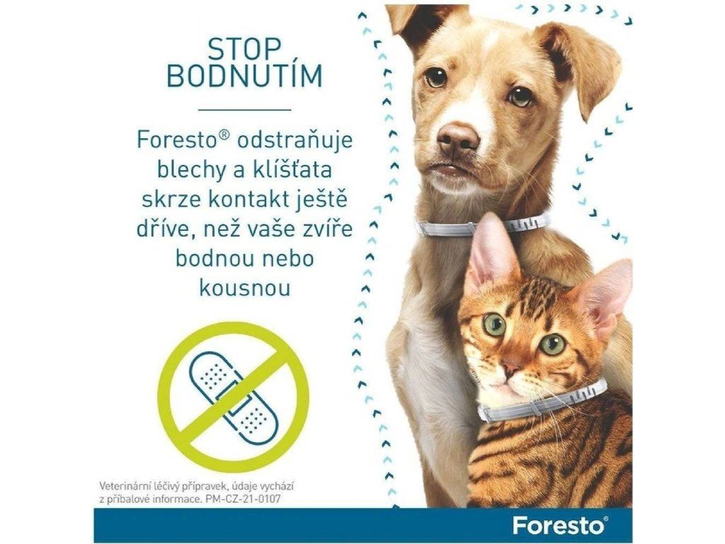 Obojek Foresto je všestrannou ochranou před běžnými druhy blech a klíšťat. Jeho účinná formulace nejenže zabíjí klíště a blechy, ale také odrazí některé druhy klíšťat ihned po kontaktu s kůží.